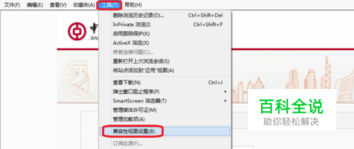 点击IE浏览器工具选择,兼容性视图设置