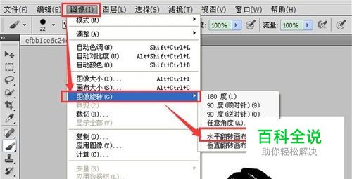 选定一张前景图,选择【图像】的【图像旋转】,选择【水平翻转画布】调整方向