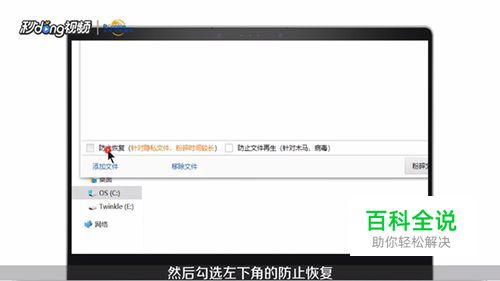 之后在弹出的页面左下角,勾选防止恢复按钮,点击粉碎文件。