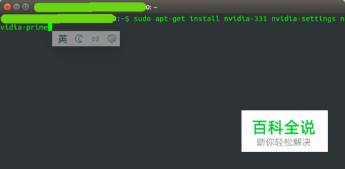 打开终端,输入以下命令: sudo apt-get install nvidia-331 nvidia-settings nvidia-prime 按下回车键,询问是否继续时选y (yes),等待安装完成。 nvidia-331 中的 331 是现在的最新版本,你可以去N卡官网查看最新版本,也可以输入“sudo apt-get install nvidia-”之后按tab键,看看最大的版本号是多少。