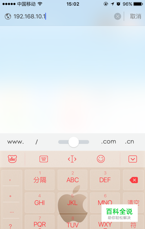 打开手机上的浏览器,如UC浏览器,QQ浏览器,苹果手机自带的Safari浏览器。 在浏览器地址栏输入192.168.10.1然后点击前往。(PS:有的朋友可能会说不是没有网络吗怎么打开啊?注意这个是设置界面不是网页,我们现在不需要网络。)