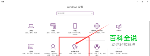 打开设置后,找到时间和语言选项。