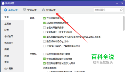 首先,我们登录QQ,然后我们可以找到面板下的设置键,如图。