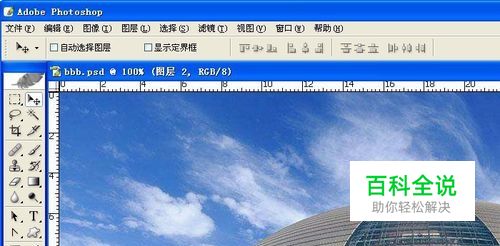 这里,可以找一张建筑的图片素材作为演示的图片,用PS软件打开,如下图所示。