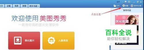 打开美图秀秀软件,点击右上角的“新建”按钮。