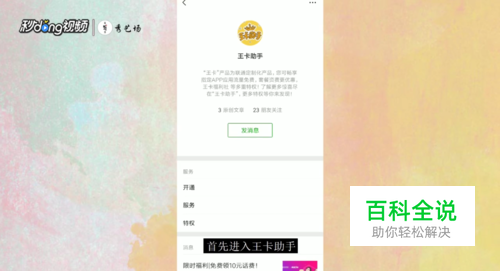 首先微信关注“王卡助手”公众号,然后进入该公众号