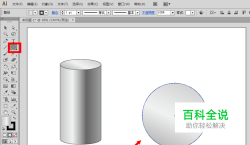 按住shift键,在空白的位置上绘制一个正圆,由于前面绘制圆柱体设置的缘故,球体也被自动带上了圆柱体的渐变颜色了