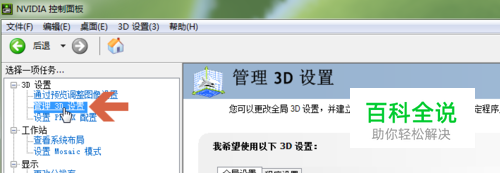 点击nvidia控制面板左侧3d设置中的【管理3D设置】。