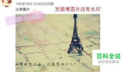 那我试一下效果,返回立马发了一条微博图片。这么一设置,图片中就没有带水印了。