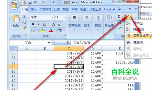 那么我们该如何让标题行不参与排序呢?选中一个数据——自定义排序。