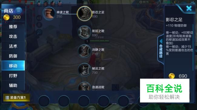 开始,我们先买双鞋子,出影忍之足,可以帮助我们躲避攻击,也可以增加抵抗