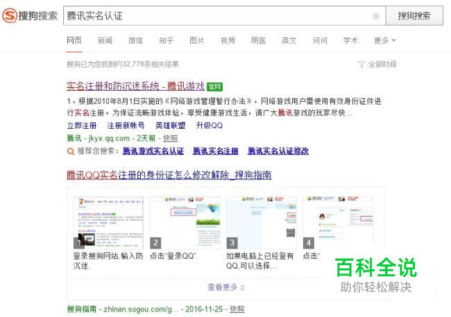 打开搜狗搜索,输入腾讯实名认证进行搜索。