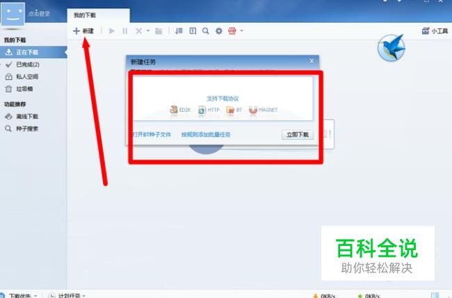 然后打开迅雷。点击新建,在新建框里粘贴磁力连接,点击下载。