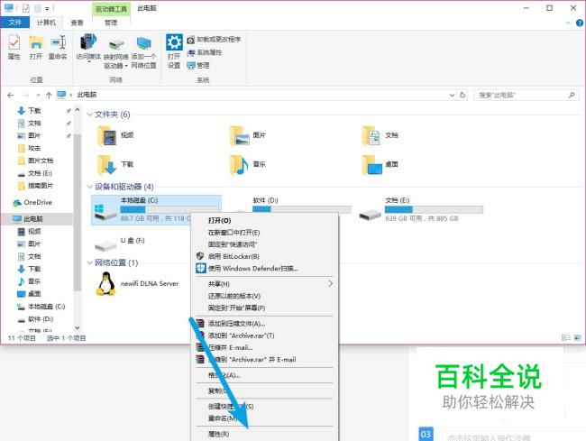 点击需要清理驱动器垃圾文件的盘符后选择属性。