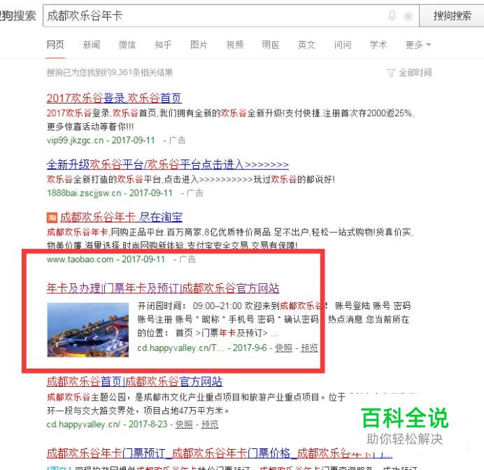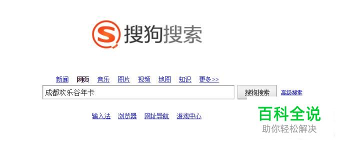 打开搜狗搜索,手动输入“成都欢乐谷年卡”。