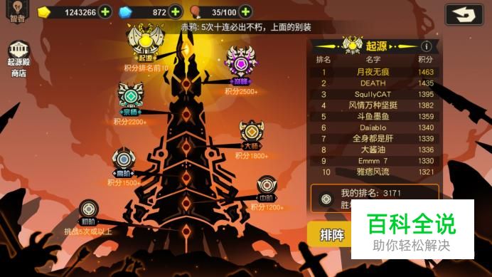 进入起源殿界面,在左侧可查看积分等级显示,右侧可查看排名。