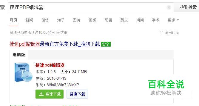打开搜狗浏览器搜索捷速PDF编辑器,然后在官网把捷速PDF编辑器下载安装到桌面