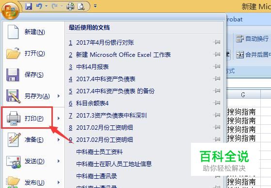 点击office图标按钮后,找到打印按钮(如下图);