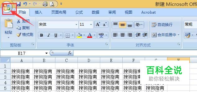 方法一:打开已有表格/空白表格,如是空白表格请在活动的单元格里输入文字,然后点击Excel表格的标题栏左上角office图标按钮(如下图);