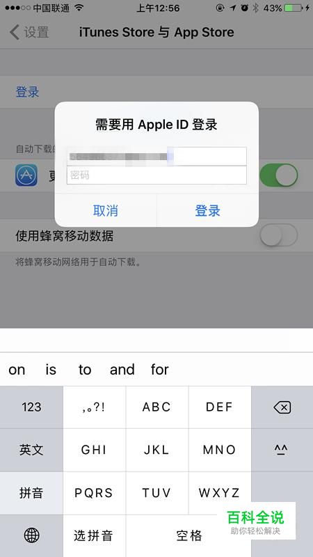 输入APPLE ID帐号和密码即可进行登录。