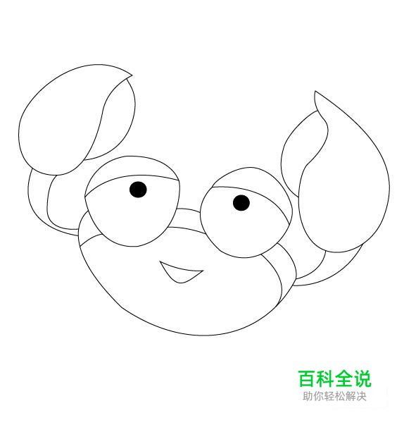 在面部上与眼睛相交处是用钢笔画出上下分界线,并画出螃蟹的嘴巴,如图所示: