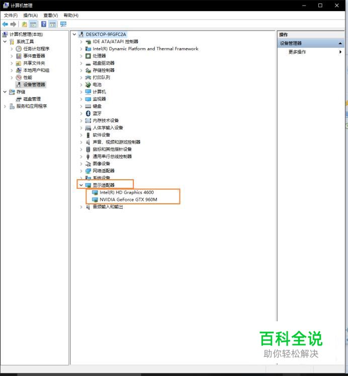 在子窗口下,找到显示适配器,展开隐藏栏,可以看到电脑安装的两个显卡。