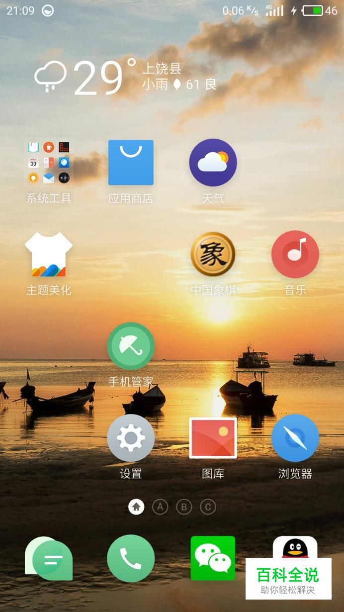 现在我来教教大家怎么看运行内存,首先把手机桌面移到主菜单桌面。
