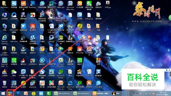 打开笔记本,来到桌面,找到“开始”按键,点击进入。