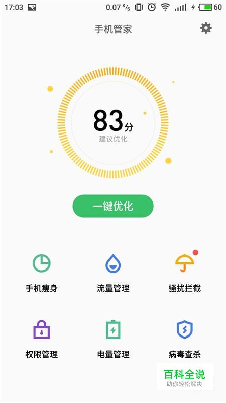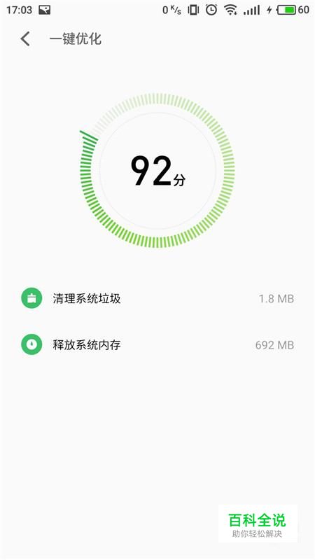 进入一键优化界面,等待系统自动对手机中的文件进行初步优化。