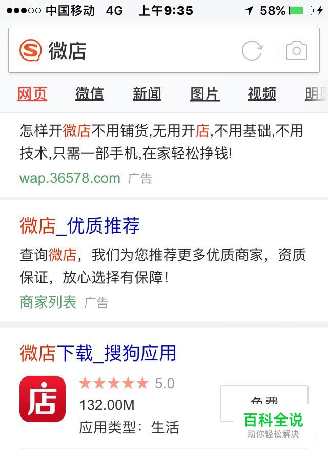 首先用搜狗浏览器输入关键字微店,进行搜索,然后下载微店的官方app