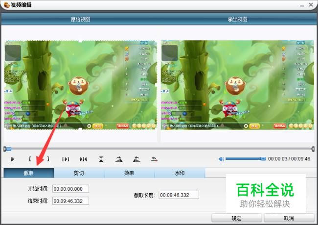 弹出视频编辑窗口,点击截取。