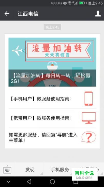 接着来到江西电信公众号平台,我们拉到下方,点击关注,如图。