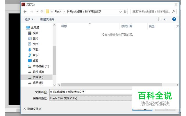 新建Flash文档,设置颜色为黑色,按Ctrl+S组合键保存文本,如图所示。