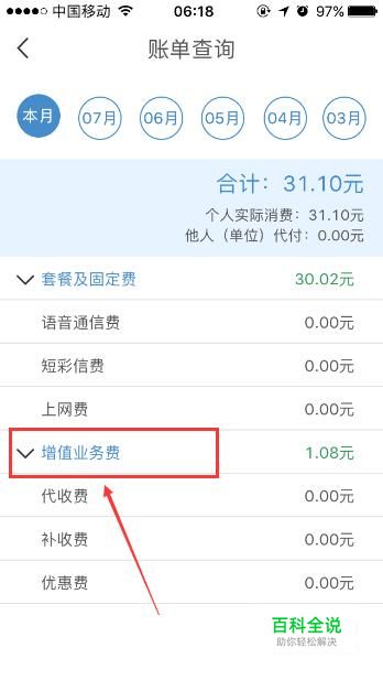 这样我们就能看到最近几个月的增值业务费扣费情况了。