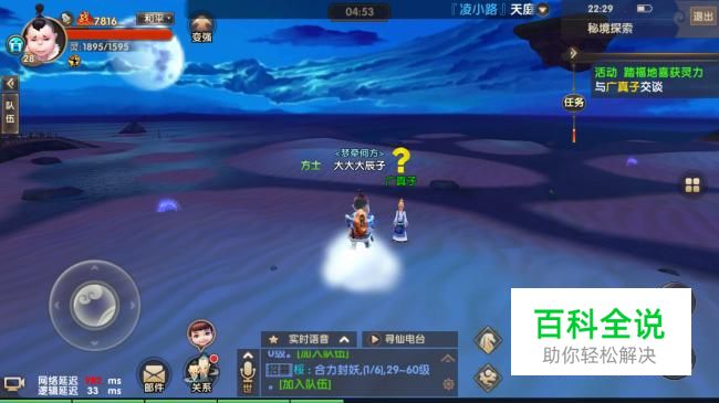 进入活动地图后,先走到“广真子”进行交谈交付任务。