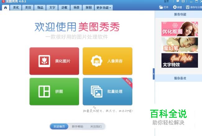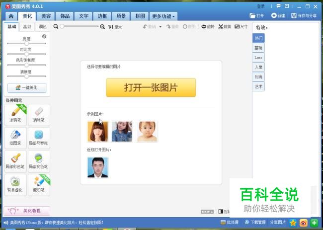 打开美图秀秀,在主页上选择“美化图片”,然后点击“打开一张图片”添加要编辑的图片。