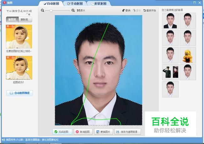 然后在要抠图的区域用抠图笔画线,点击下方的“完成抠图”即可。