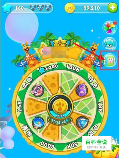 进入猪来了游戏主页,点击右侧的第三个图标,如图。