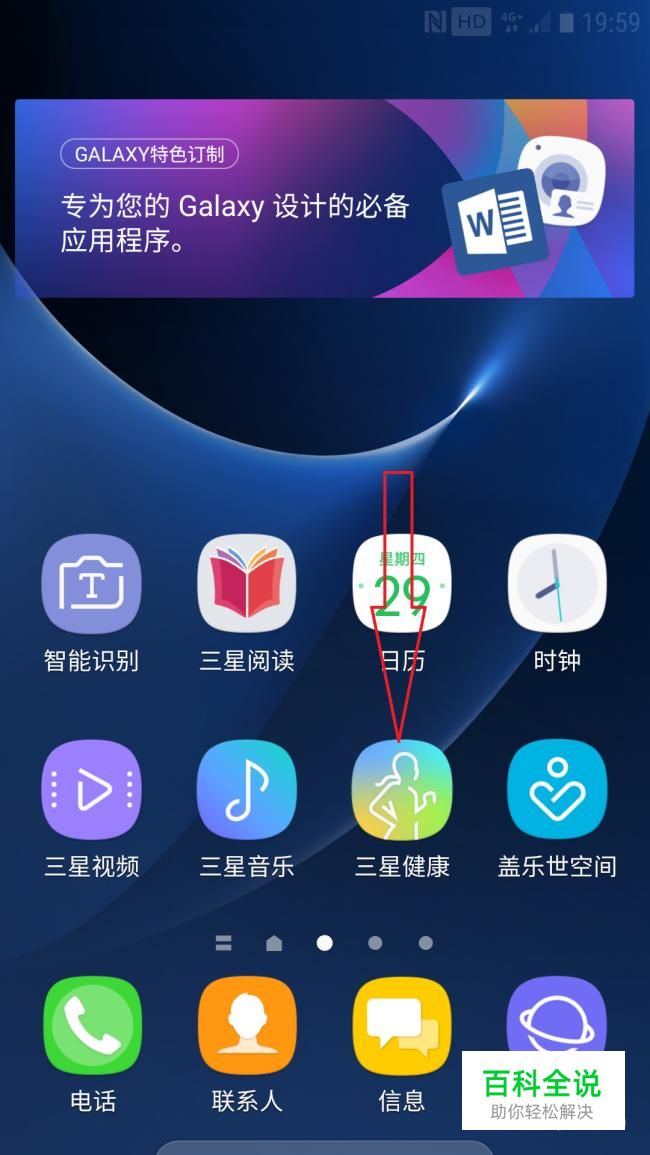 我们可以通过手机里的运动软件来计步,以此测算距离。这里以三星手机自带的三星健康为例。