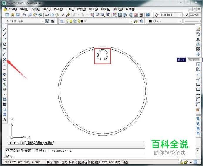再次使用画圆指令,画出两个小圆,如图所示。