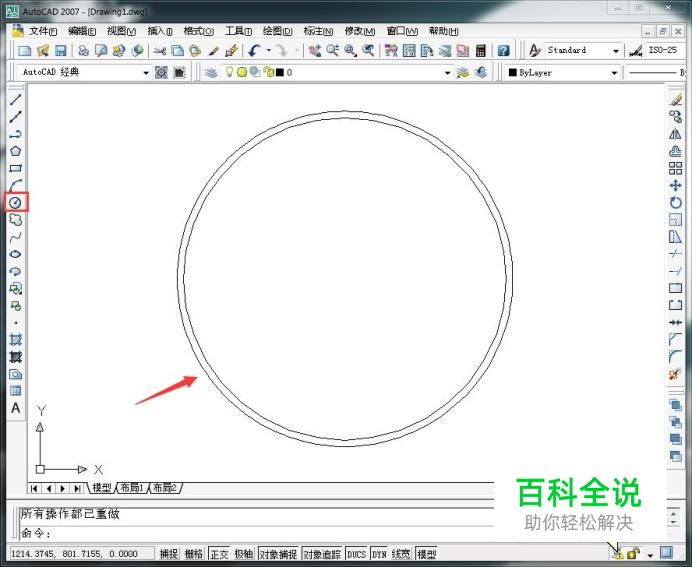 使用画圆指令,画出两个大圆,如图所示。
