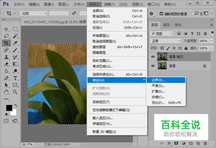Ctrl+A全选画布;然后,执行选择-修改-边界命令,参数如图。