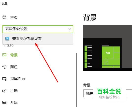 在搜索栏中搜索关键字,查看高级系统设置
