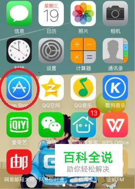 从苹果手机界面中找到苹果应用商店并打开。如图: