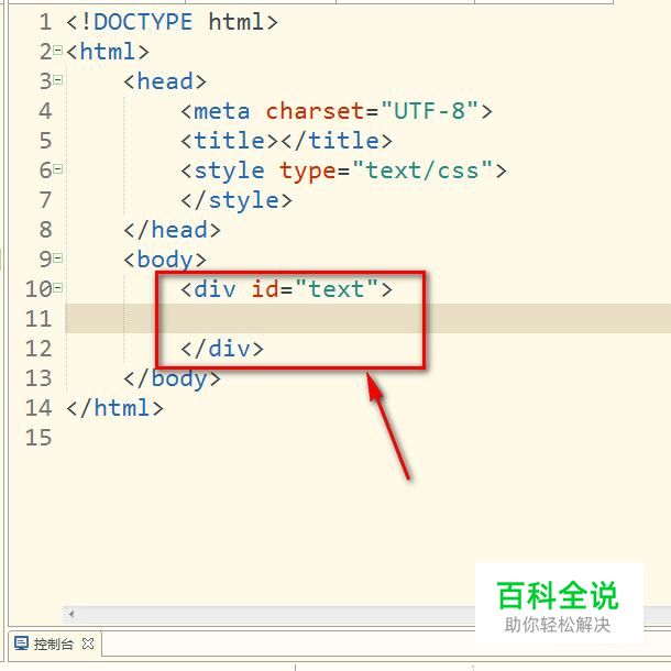 接着我们在div中插入文字,随便输入什么文字都可以。