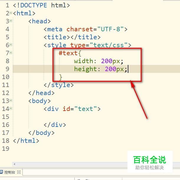 然后我们设置一下这个div的宽度和高度。这里我就设置成200px。