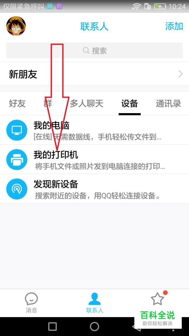 在联系人界面的设备下方进入我的打印机。