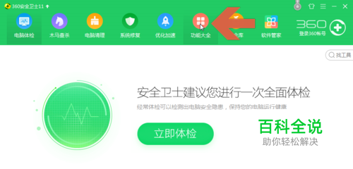 点击360安全卫士主界面上方的【功能大全】按钮。