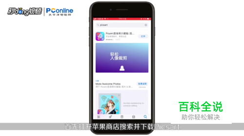 打开苹果商店,搜索并下载“PicsArt”,下载完成后打开该软件。
