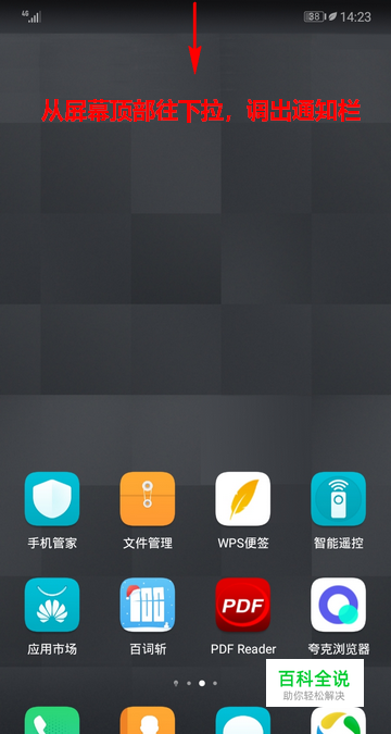 首先,在手机桌面从屏幕顶部往下拉,调出通知栏。